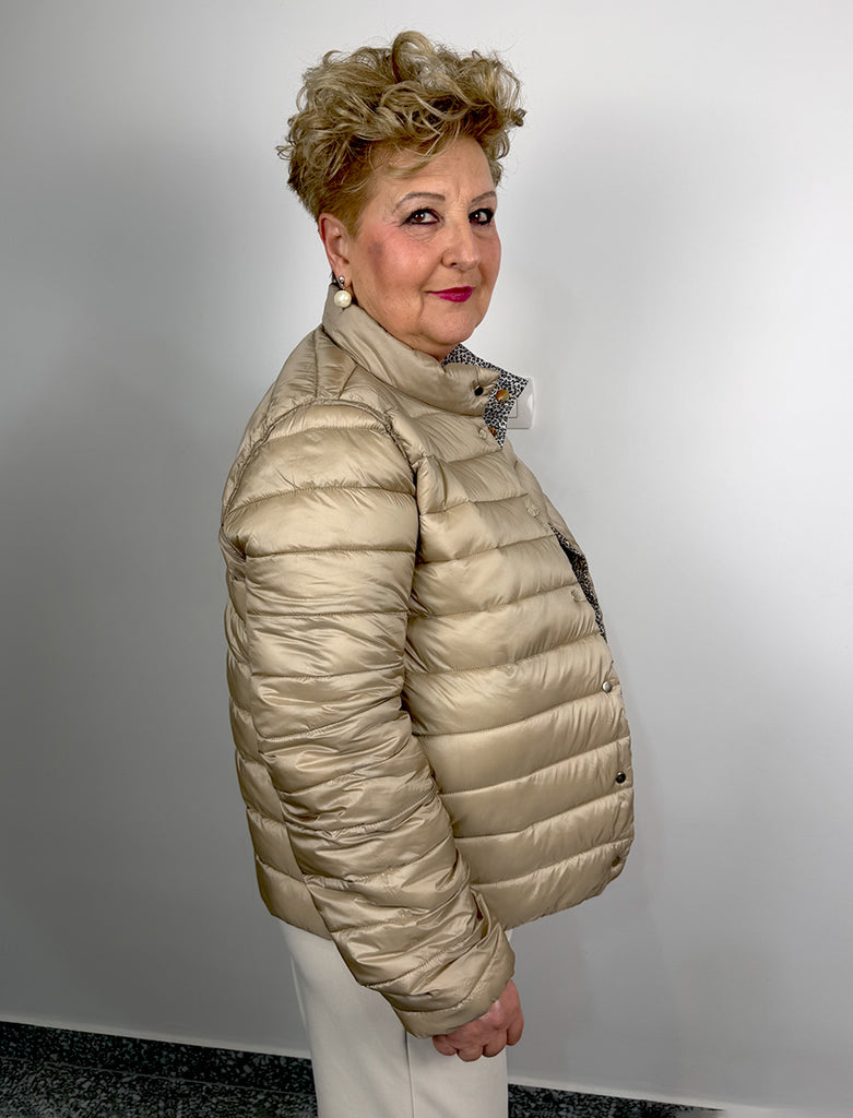 - Chiusura con bottoni dorati a pressione, tasche inserite