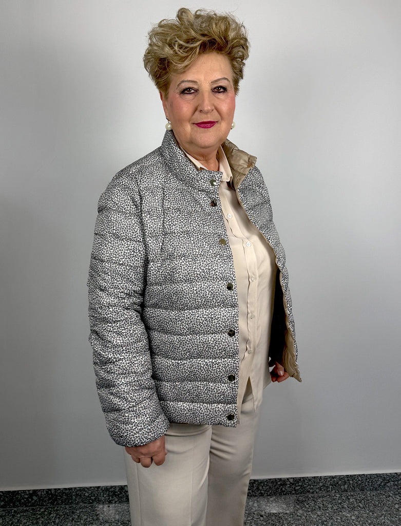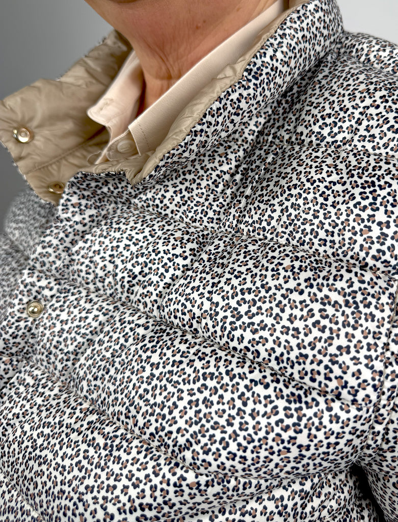 A prova di intemperie: piumino in nylon trapuntato dal design reversibile e proporzioni leggermente cropped. Facilmente ripiegabile grazie alla linea essenziale e leggera.
