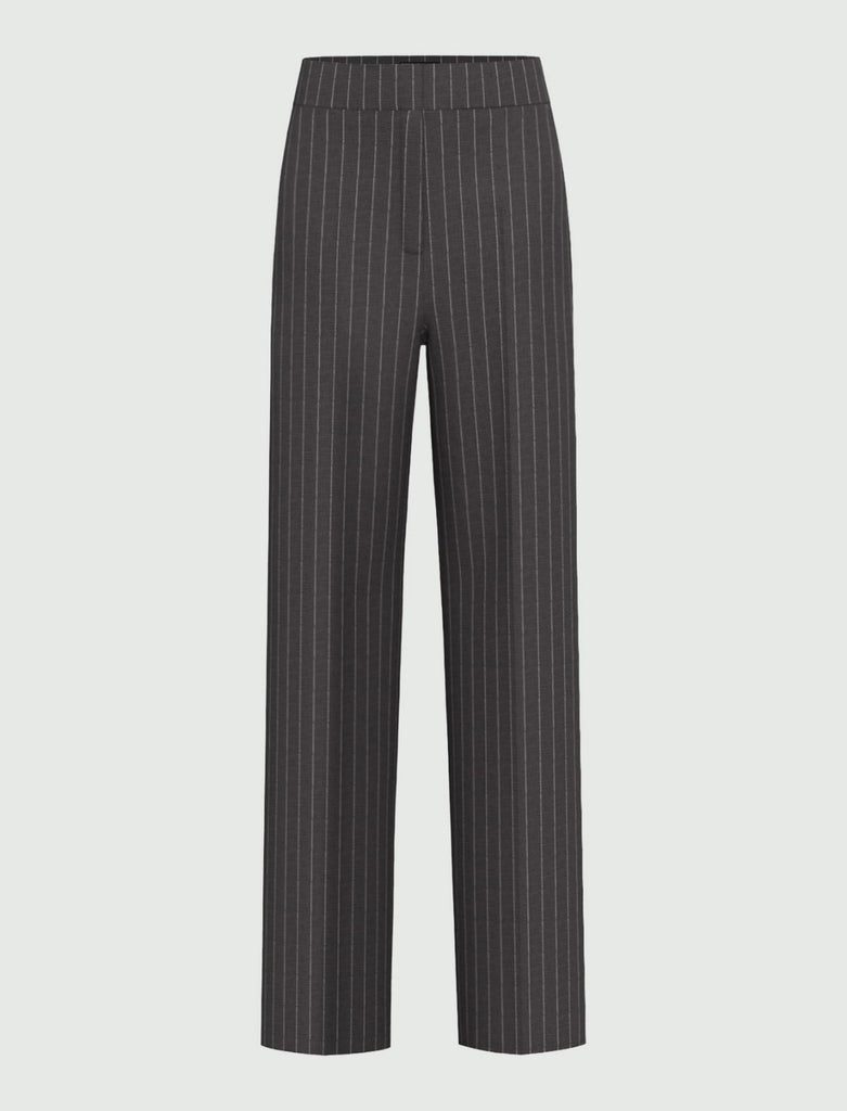 Borrowed from the boys: pantaloni in gabardine dal taglio dritto e morbido. Il design essenziale si presta a diverse occasioni, con sneakers o mocassini di giorno, mules per la sera.
