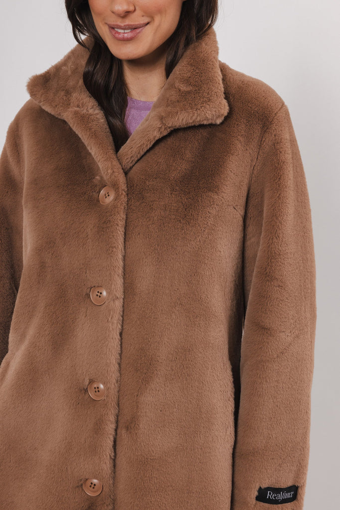 Rino & Pelle Nonna cappotto di media lunghezza con collo alto twig marrone