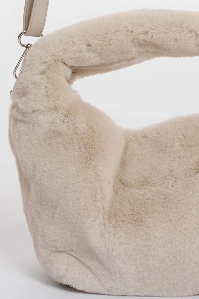 Questa piccola borsa è realizzata in morbidissima pelliccia sintetica, il che la rende un piacere da portare con sé. Ha le dimensioni perfette per contenere i tuoi oggetti essenziali. Dotata di una pratica tracolla rimovibile e di una chiusura con cerniera sicura per tenere tutti i tuoi effetti personali al sicuro.
