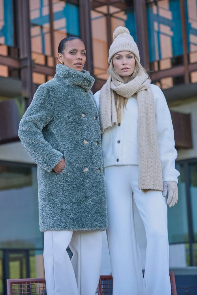 Questa sciarpa lavorata a maglia non è solo pratica, ma è anche un capo di stile che, grazie alla sua fibra metallica, arricchirà il tuo guardaroba invernale.