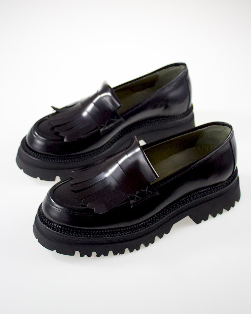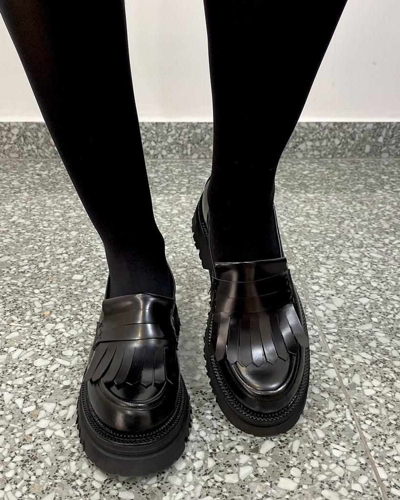 Brio 800 Mocassino di Pelle Nera Lucida da Donna con Frange