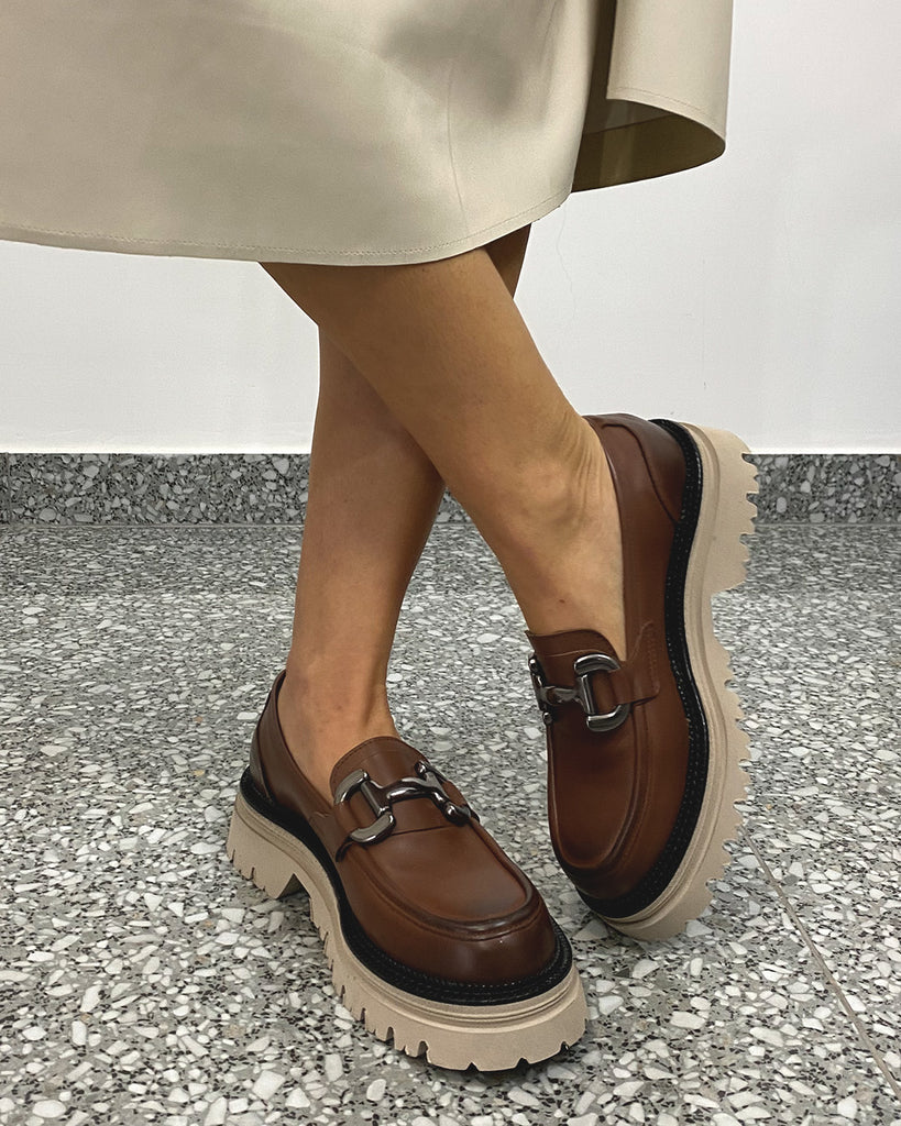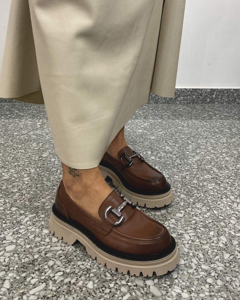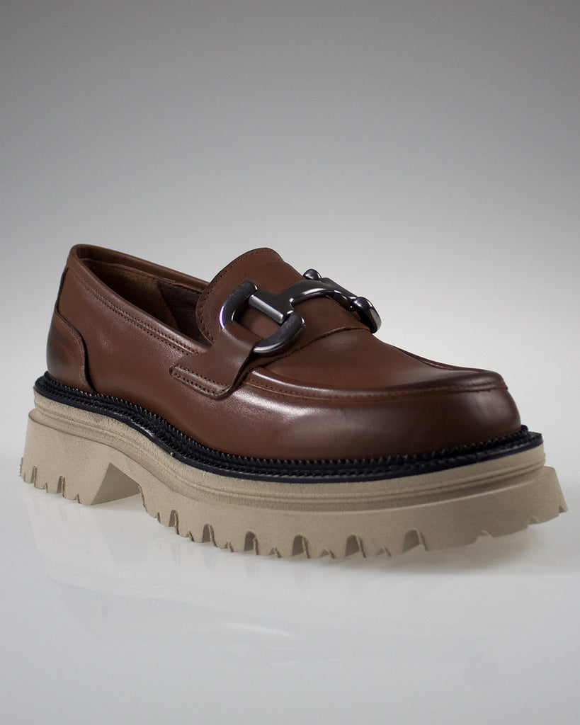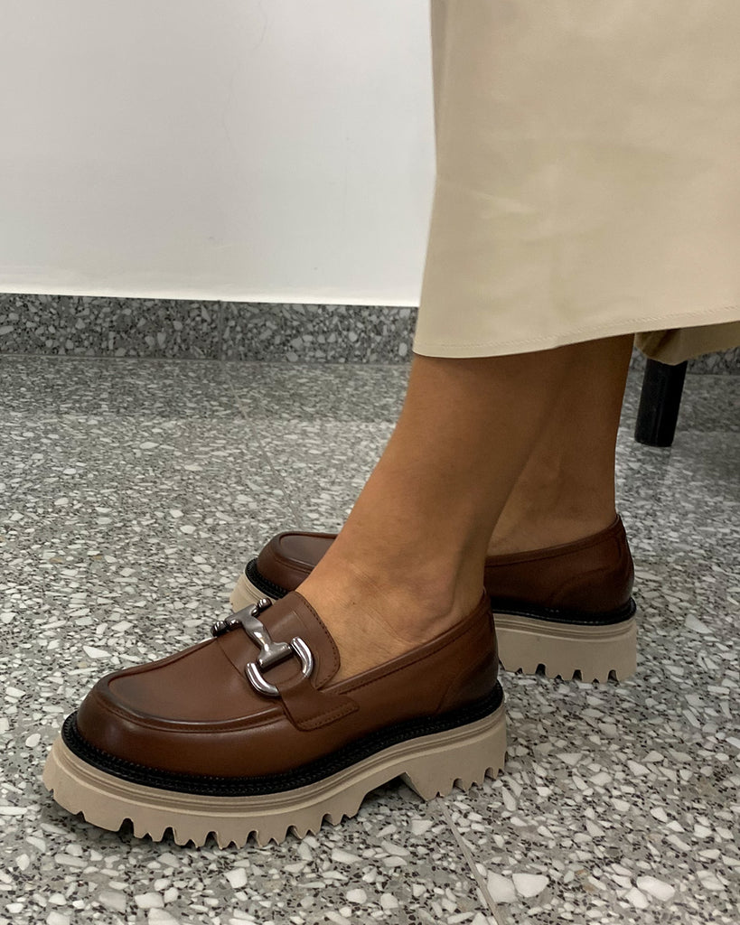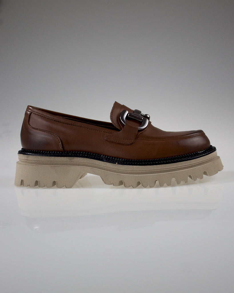 Brio 802 Mocassino da donna cuoio con Guardolo e Accessorio Nickelato