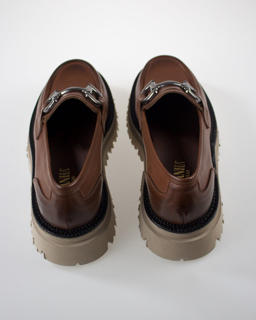 - Dettagli distintivi: Vaschetta effetto invecchiato, punta spazzolata a mano e accessorio nichelato di design.