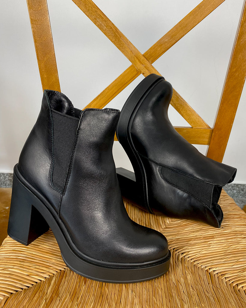Brio Gilda stivaletto donna con tacco in pelle nera ed elastico laterale