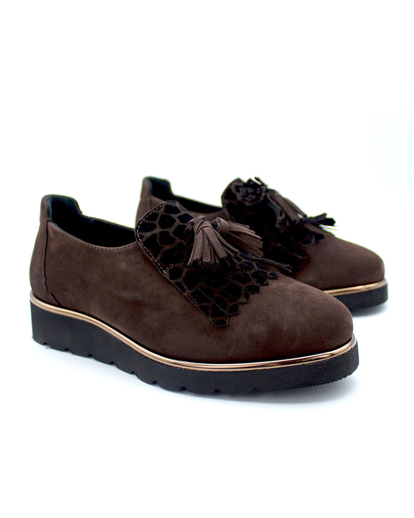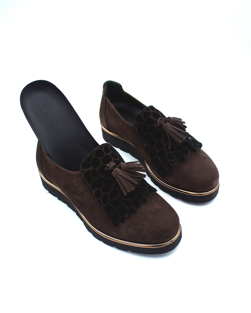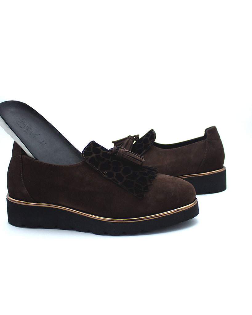 Carim 4118 Mocassino da donna Accollato con Patta e Nappine in Colore Testa di Moro - Design Comodo con Plantare Estraibile