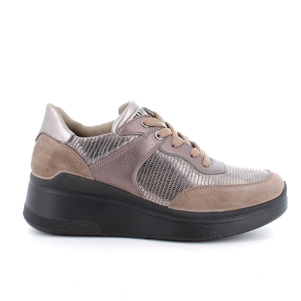 Igi & Co 6654311 Sneakers con zeppa in pelle da donna fango-taupe laminato