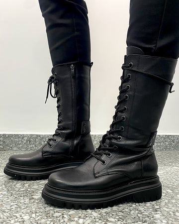 Sofia Mare 11006 anfibio donna in pelle nera con lacci e cerniera