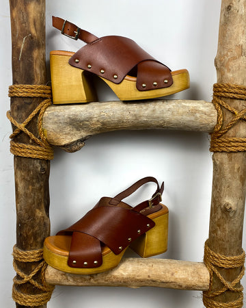 Sofia Mare 239230 zoccolo sandalo con incrocio alto 8 cm con borchie cuoio
