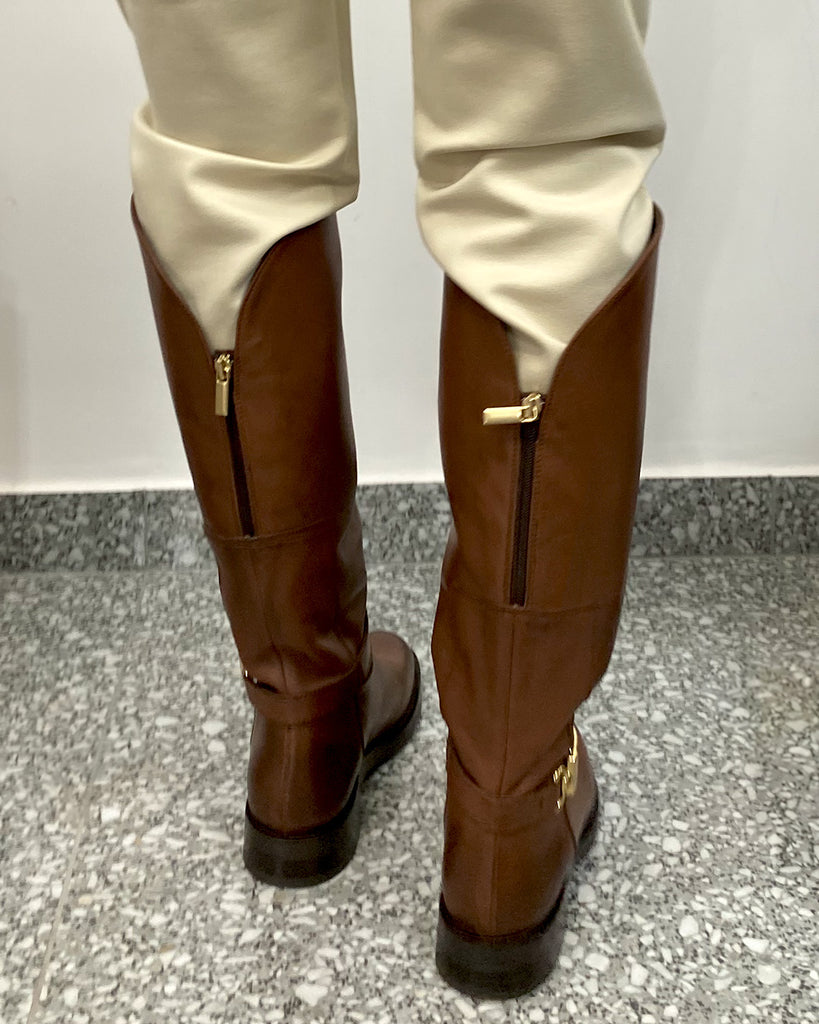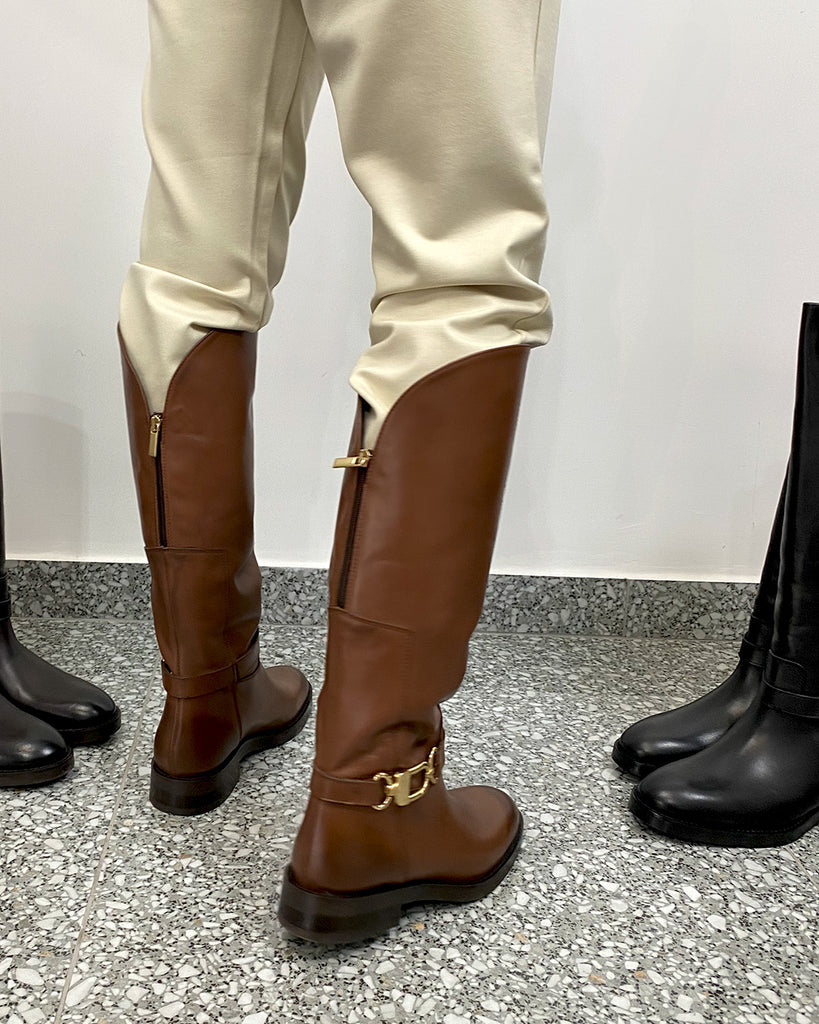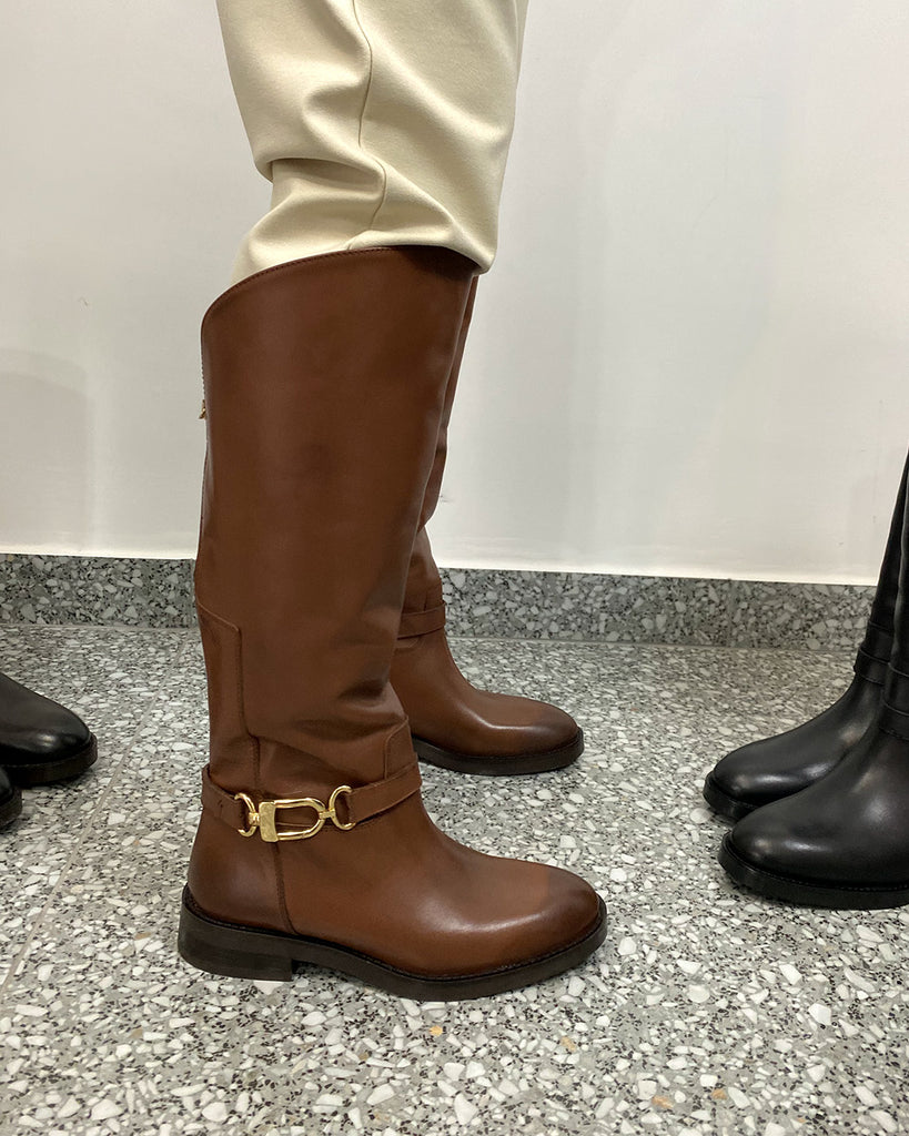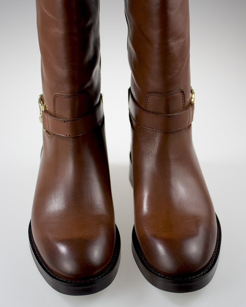 Brio 103 Stivale Cavallerizzo da donna cuoio con Zip a Metà Gambale e Fibbia Decorativa