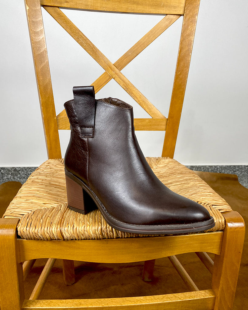 Splendido stivaletto in pelle dall'ispirazione texana, ideale per aggiungere un tocco glamour a qualsiasi outfit. Il comodo tacco alto slancia la figura, mentre la punta affusolata dona eleganza al design. Grazie alla zip sul lato interno, si calza facilmente, rendendolo pratico per l'uso quotidiano. Perfetto da abbinare sia a gonne che a pantaloni, è la scelta ideale per chi desidera un look ricercato e di tendenza.