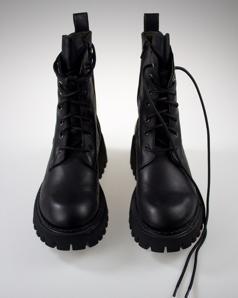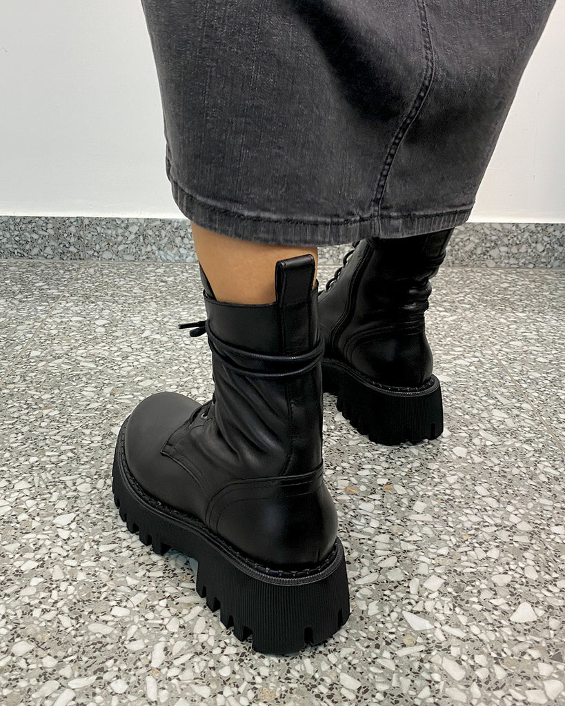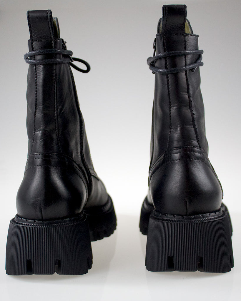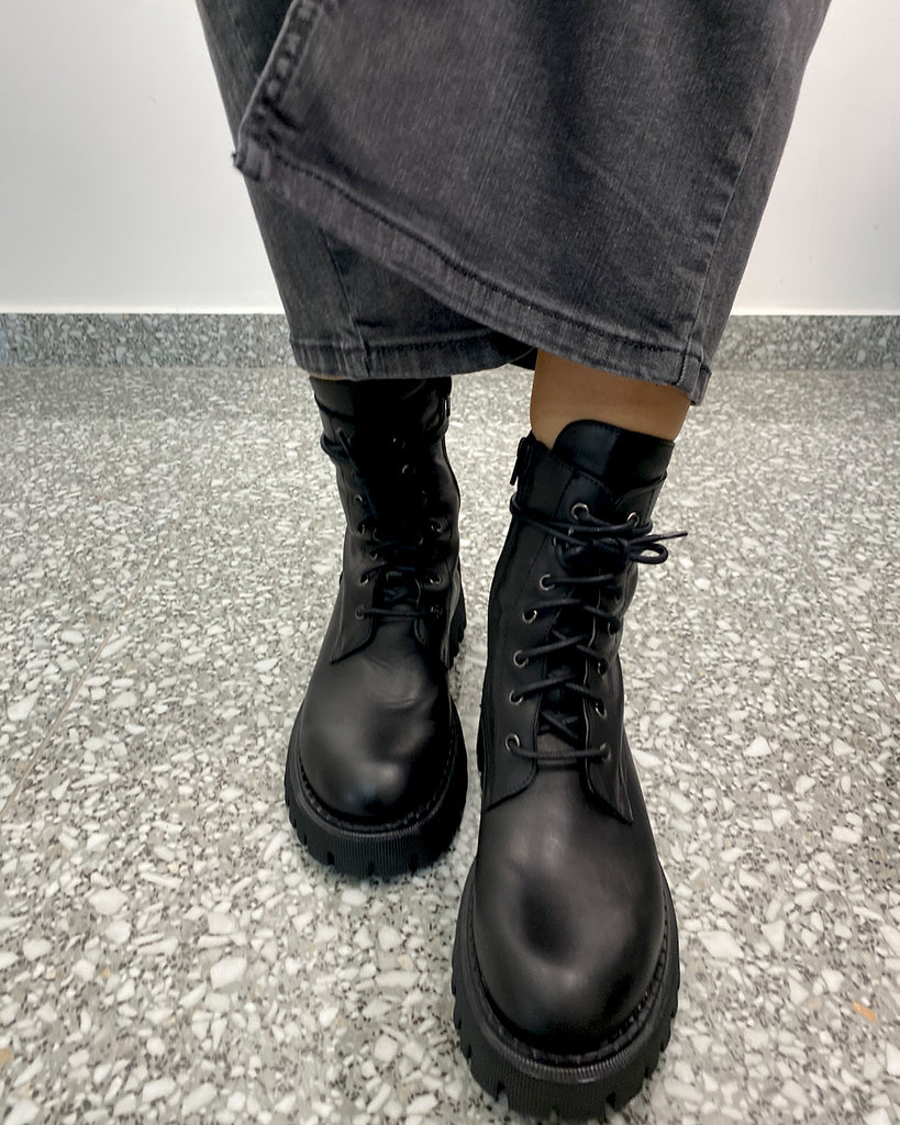 Un classico intramontabile rivisitato per un look contemporaneo, l’Anfibio da Donna con Lacci e Cerniera Laterale offre uno stile grintoso e versatile. Realizzato in pelle nera di alta qualità, si distingue per la sua praticità grazie alla chiusura con lacci e alla comoda cerniera laterale, che permette una calzata rapida e sicura. La suola carrarmato e le altezze bilanciate del tacco e del gambale garantiscono comfort e stabilità, rendendolo ideale per affrontare ogni giornata con stile.