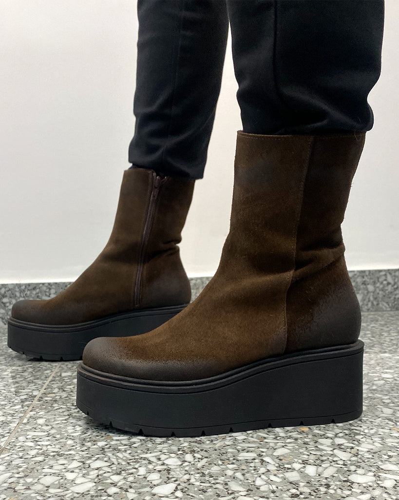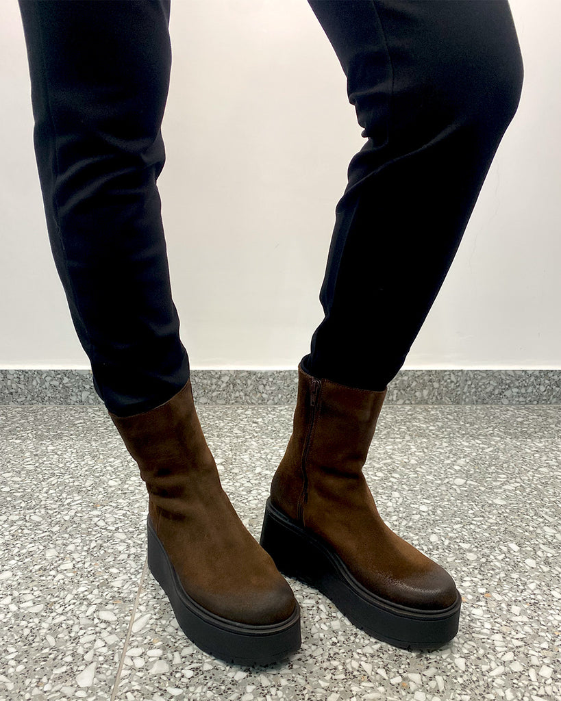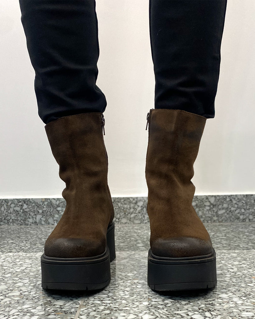Brio Afrodite 03 stivaletto platform donna in pelle scamosciata moro