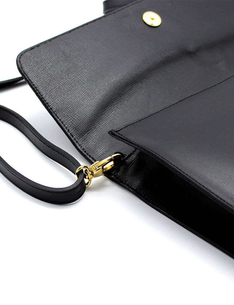 - Materiale e colore: Pelle di vitello Saffiano colore nero