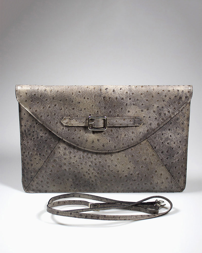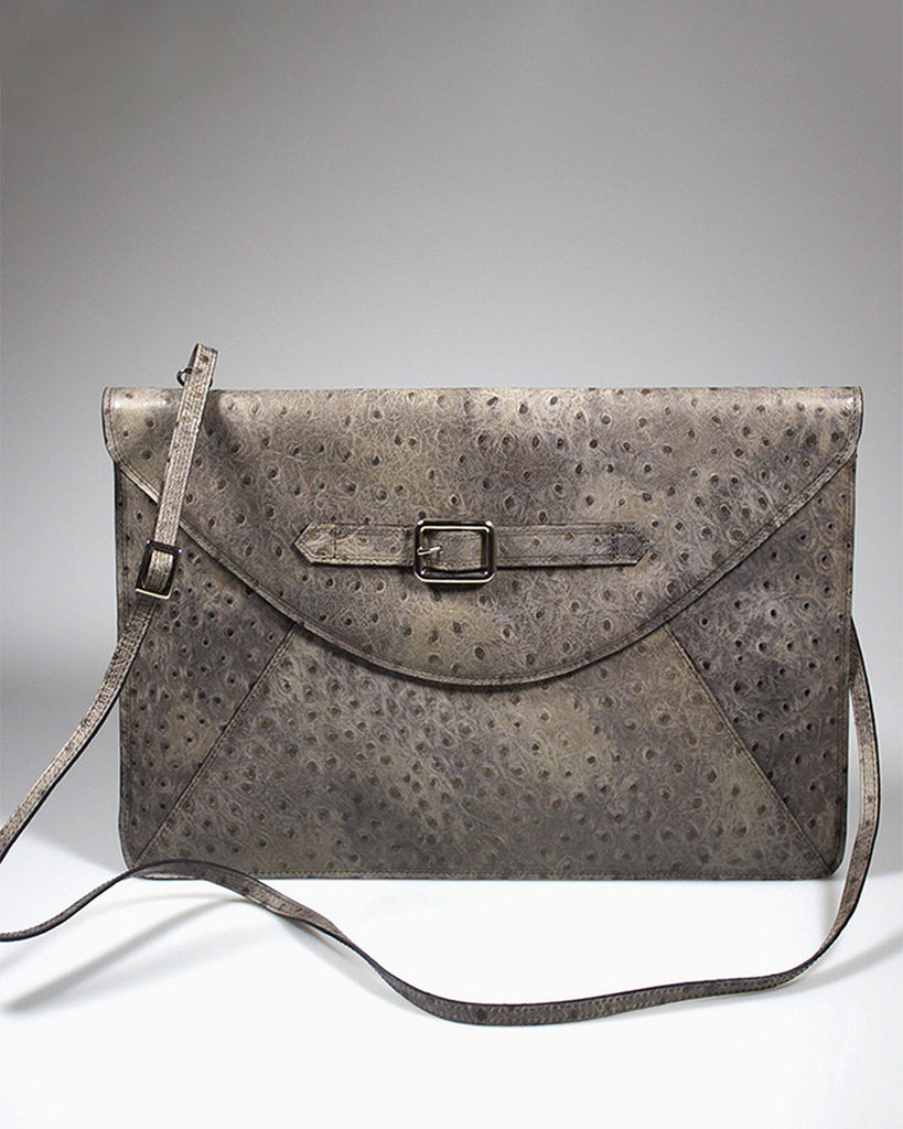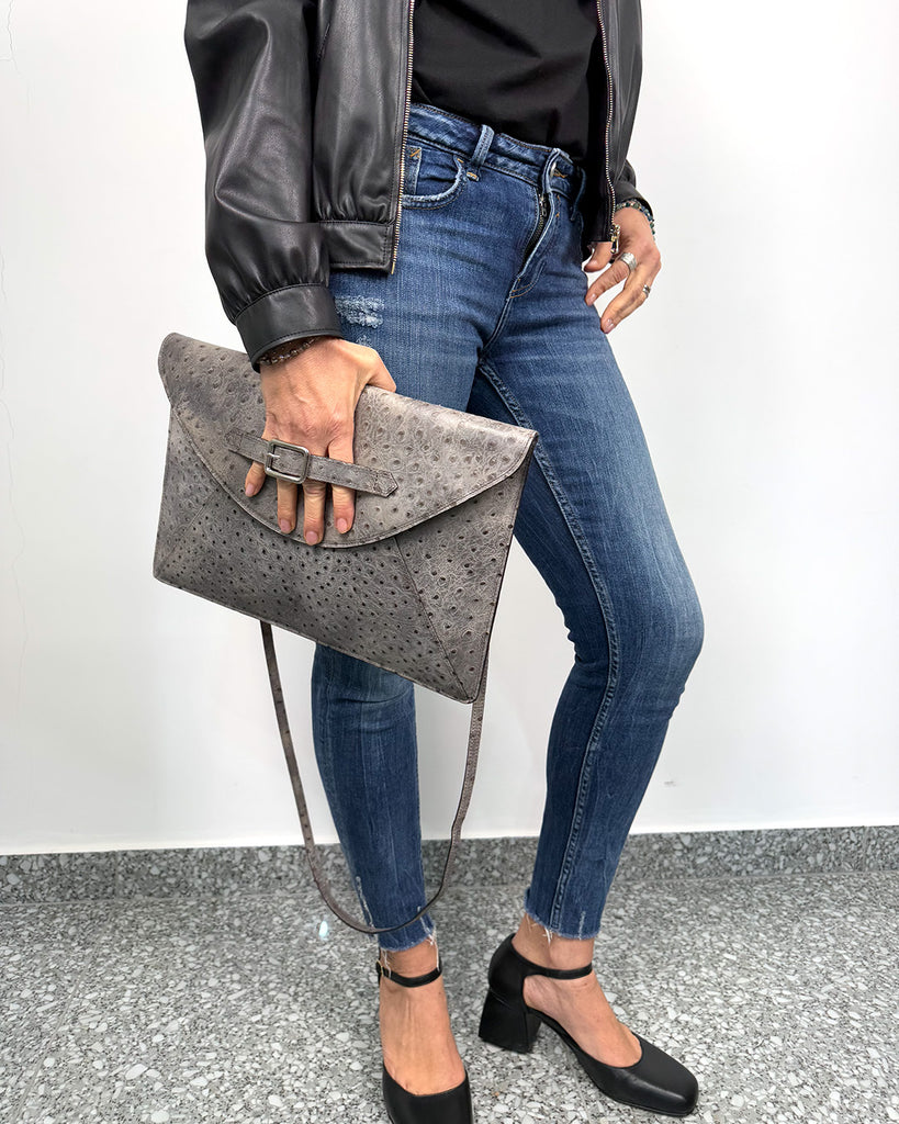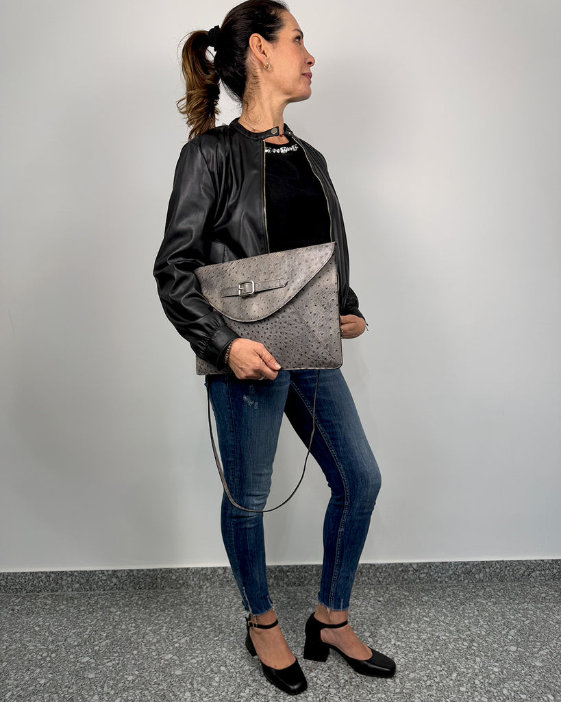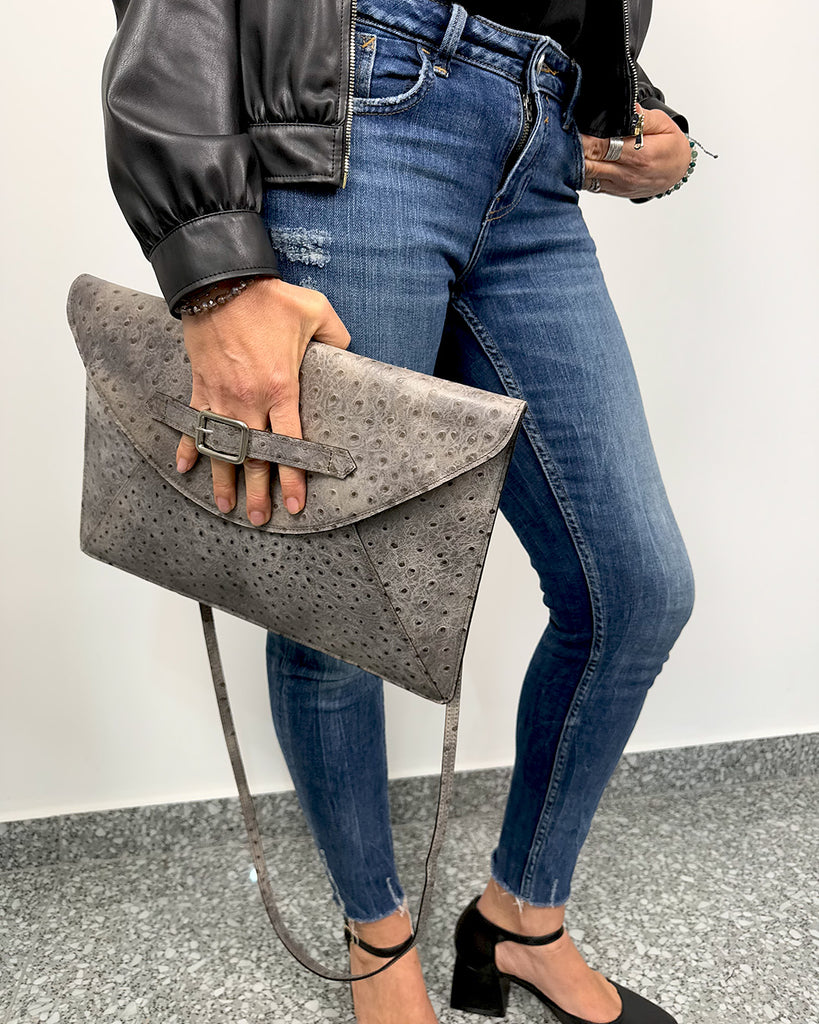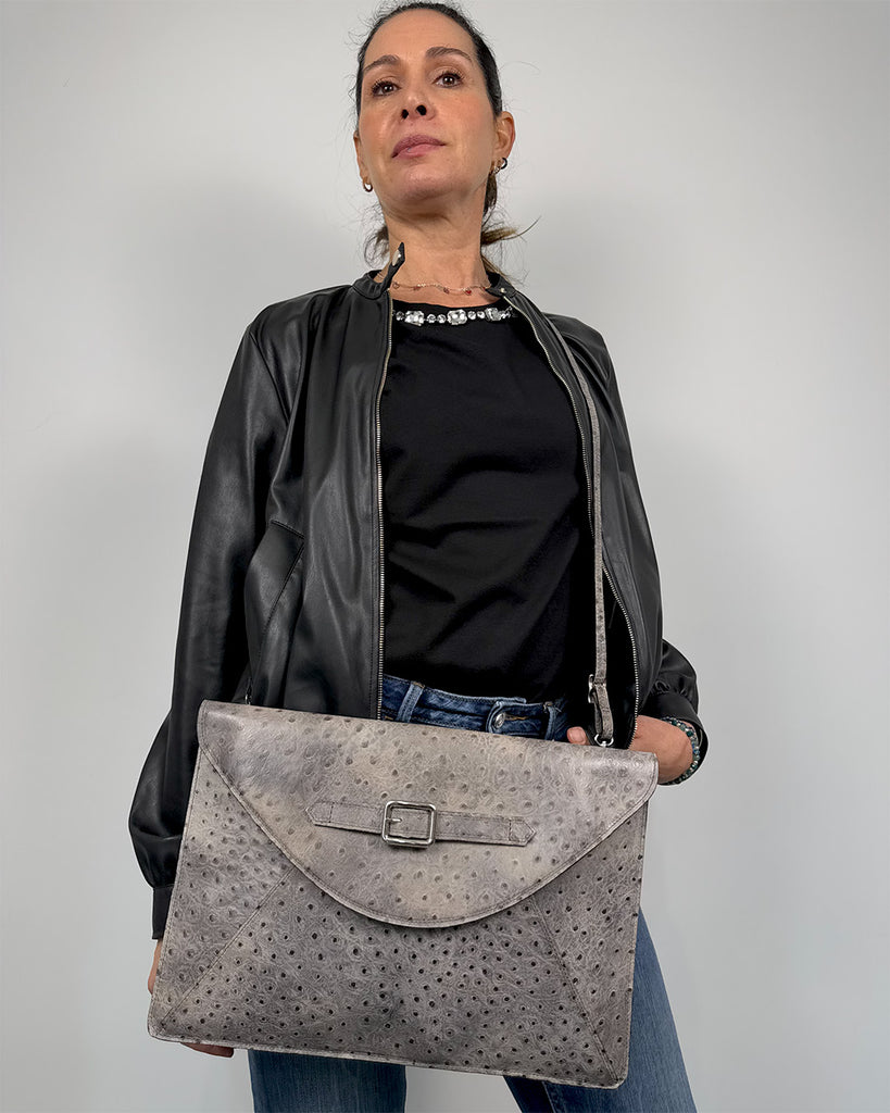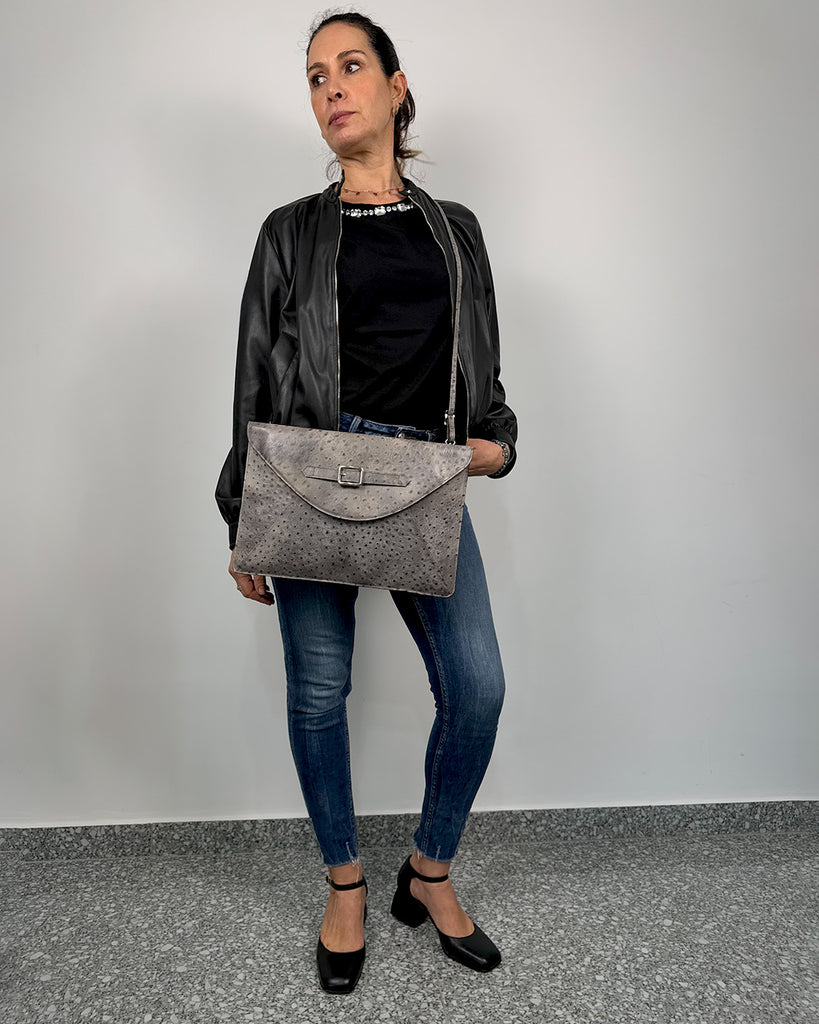 Lidia borsa da donna in pregiata pelle stampa struzzo grigio Vittoria Sella