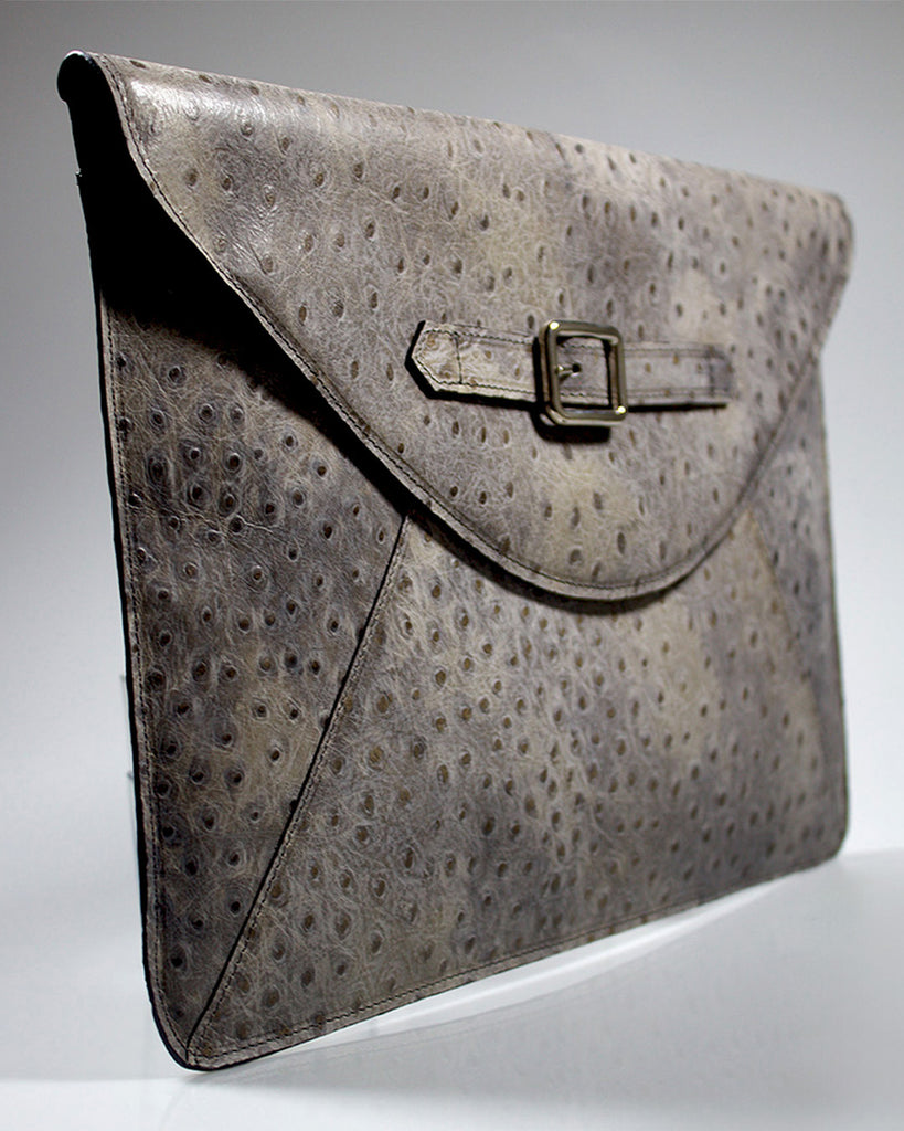 - Materiale e colore: Pelle di vitello stampa struzzo